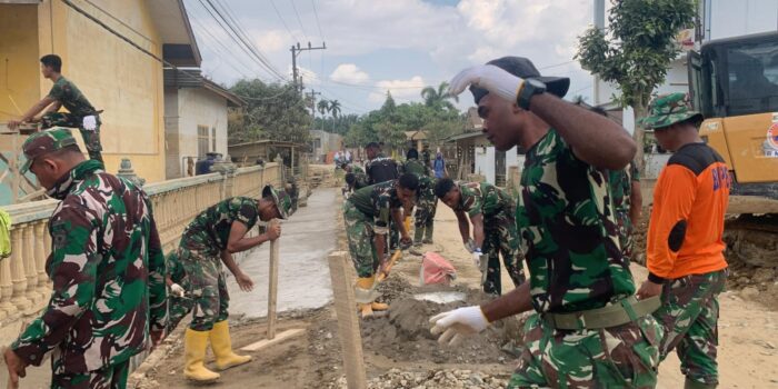 KUALA SIMPANG – Penanews.co.id – Anggota Koramil 07/Kejuruan Muda, Kodim 0117/Aceh Tamiang yang tergabung dalam Satuan Tugas Penanggulangan Bencana Alam (Satgas Gulbencal)