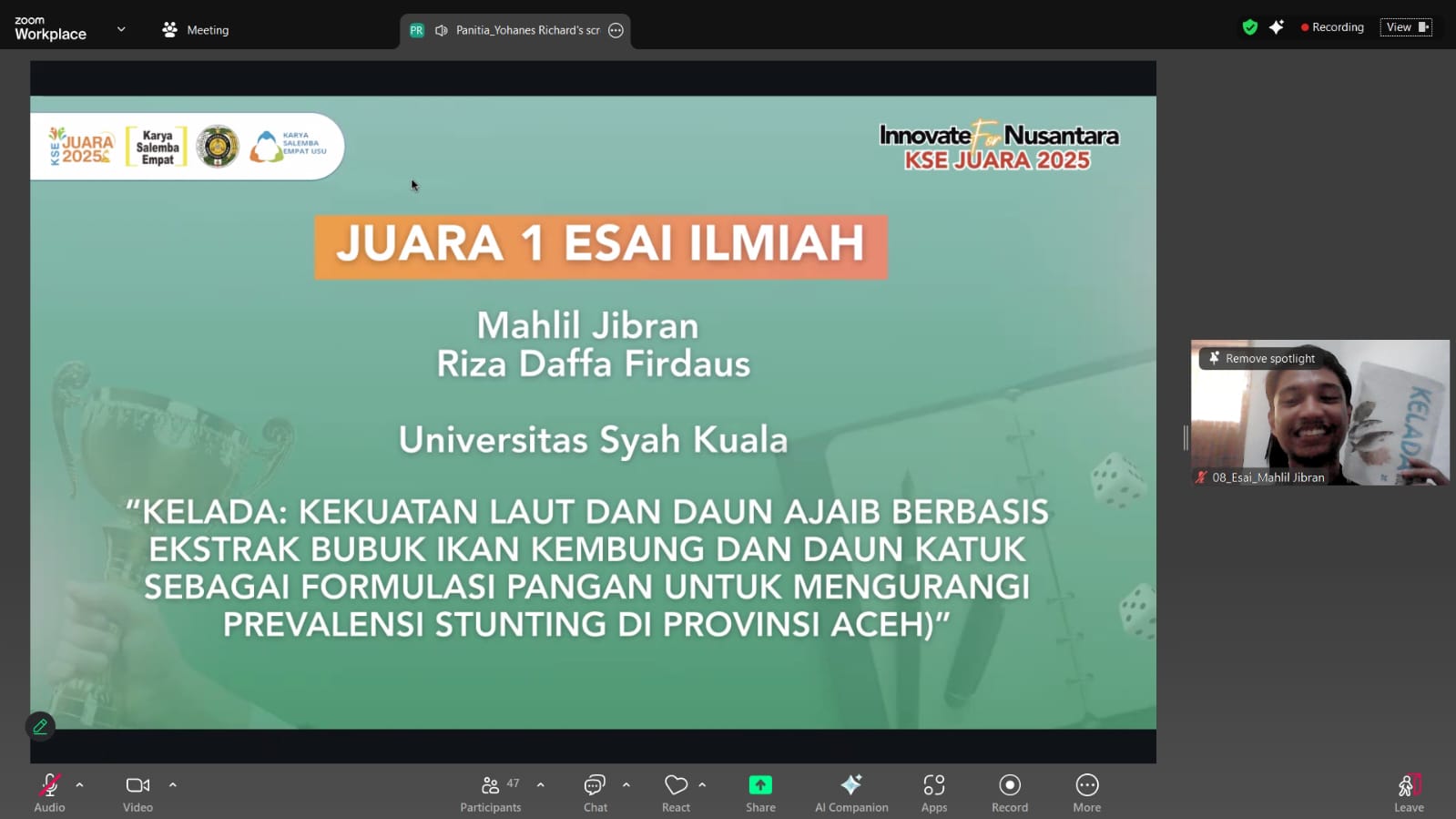 2 Mahasiswa FK USK Raih Juara 1 Nasional KSE JUARA 2025, Lewat Inovasi Gizi Lokal “KELADA”