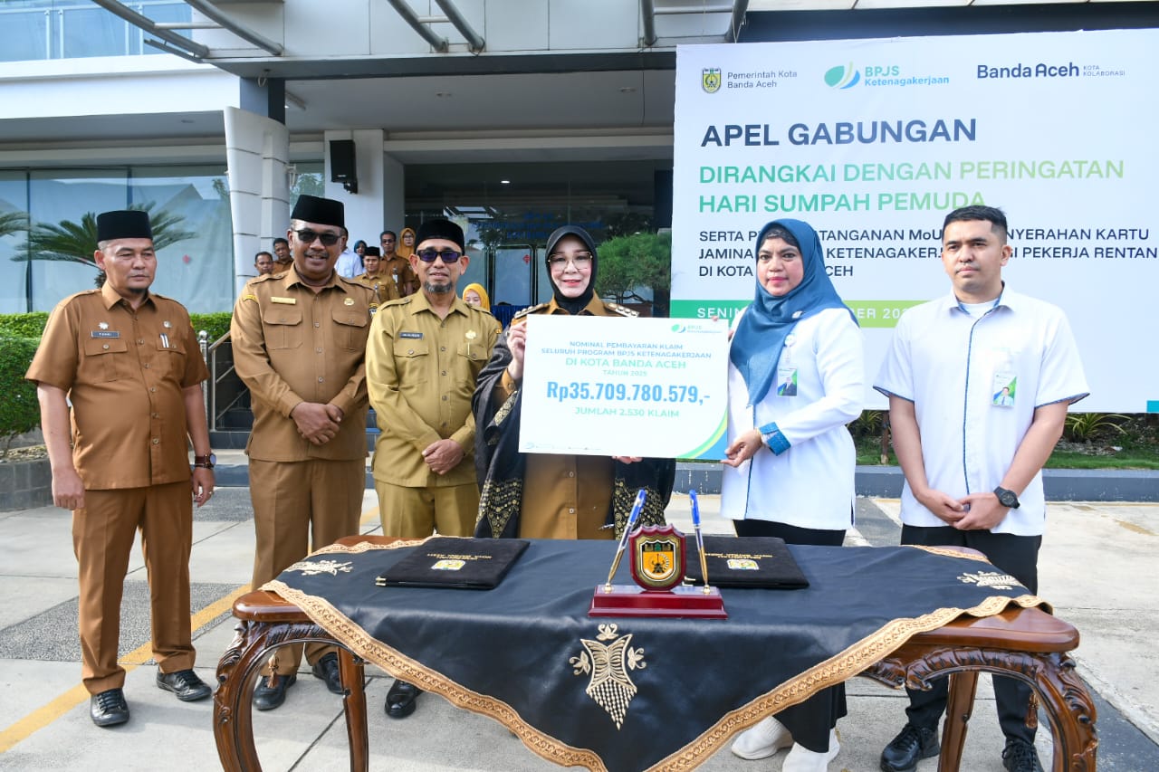 Upacara di awali dengan penandatanganan Nota Kesepahaman (MoU) dengan BPJS Ketenagakerjaan Cabang Banda Aceh. Melalui program ini, sebanyak 4.800 pekerja rentan, mencakup disabilitas, nelayan, tukang, pedagang kecil, hingga pekerja sosial keagamaan, akan mendapat perlindungan Jaminan Kecelakaan Kerja (JKK) dan Jaminan Kematian (JKM) selama tiga bulan yang dibiayai penuh oleh APBK 2025.