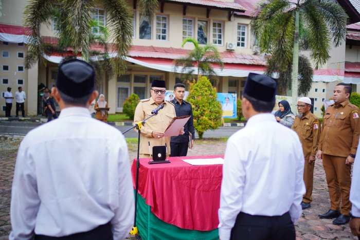 Prosesi pelantikan berlangsung di halaman Kantor Bupati, Kompleks Perkantoran Suka Makmue, Selasa (14/4/2026).