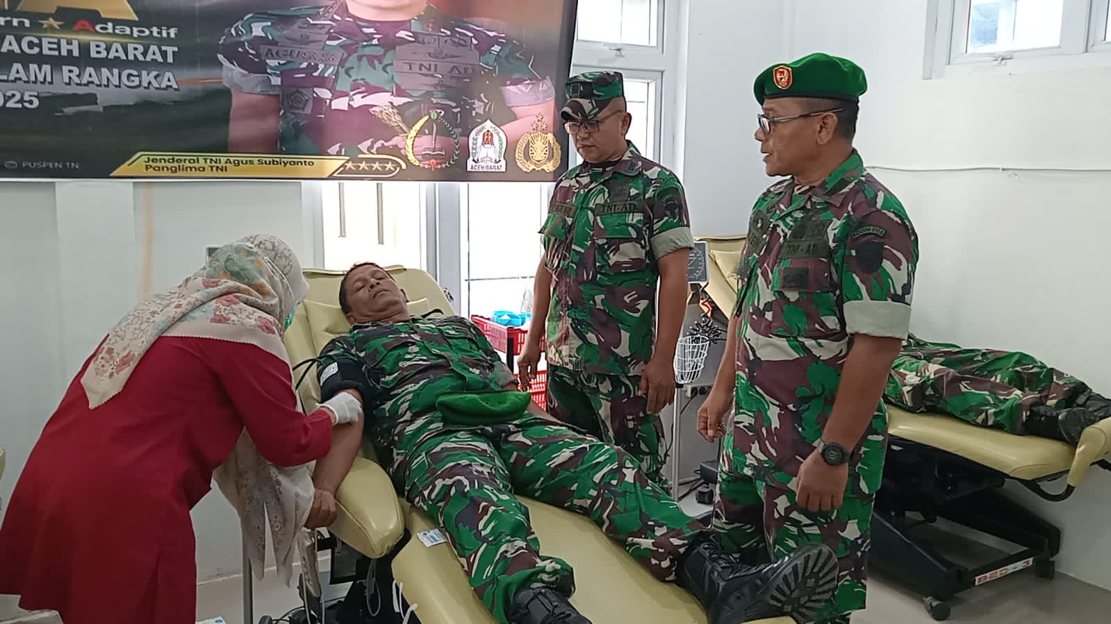 Pelaksanaan donor darah berlangsung meriah dan penuh antusias, salah satunya di Kabupaten Aceh Barat yang dipusatkan di Rumah Sakit Umum Daerah (RSUD) Cut Nyak Dhien, Jalan Gajah Mada, Desa Drien Rampak, Kecamatan Johan Pahlawan. Dalam kegiatan tersebut, sebanyak 100 prajurit TNI dan 50 anggota Persit Kartika Chandra Kirana turut serta menjadi pendonor. Para peserta lebih dulu melalui tahapan pendaftaran, pemeriksaan tekanan darah, screening, hingga pengecekan hemoglobin (HB) sebelum dinyatakan layak mendonorkan darah.