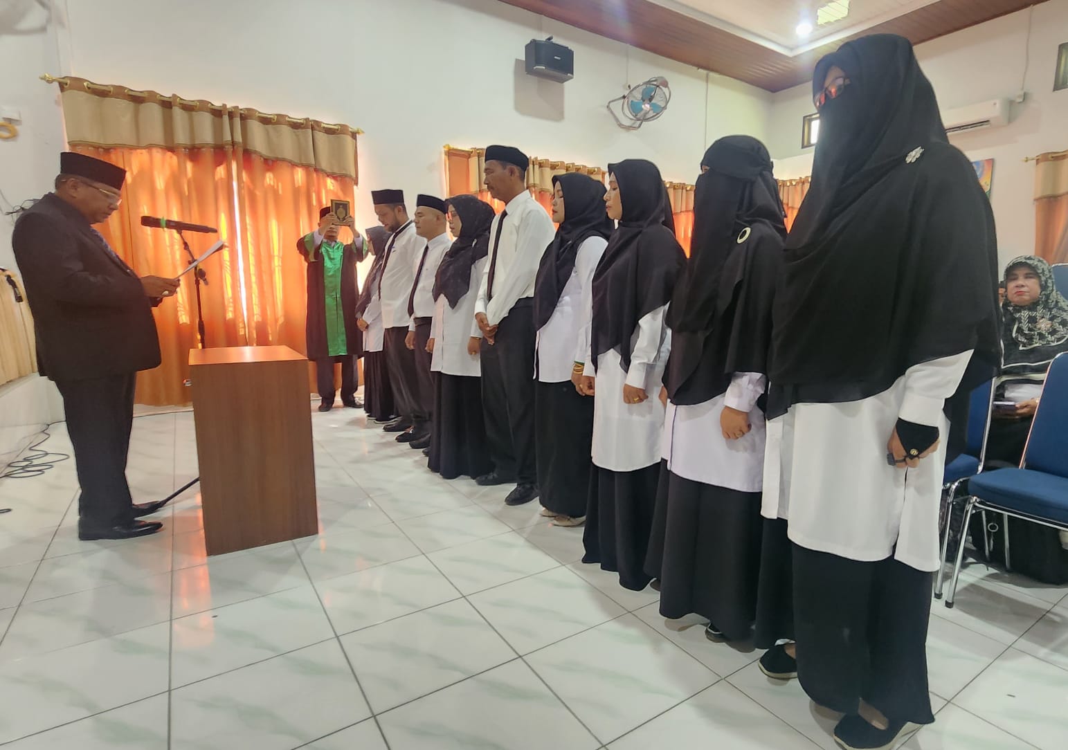 Pelantikan turut dihadiri Kasubbag TU, Iskandar S HI, para Kasi dan Penyelenggara, Pengawas Madrasah, Ketua K2M : MI, MTs dan MA, serta para tamu undangan lainnya.