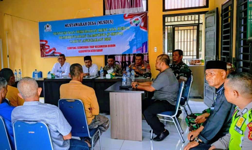 Dalam musyawarah desa (Musdes) yang dihadiri oleh Kepala Dinas BPMG Aceh Barat, Kepala Inspektorat, Camat Bubon, Kapolsek Bubon IPTU Azanuddin, Dansposramil Bubon, perwakilan Tuha Peut, serta tokoh masyarakat, dibahas sejumlah temuan terkait penggunaan dana desa.
