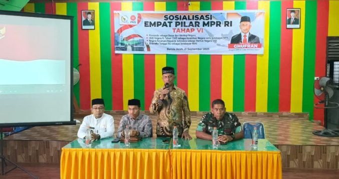 BANDA ACEH — Penanews.co.id — Anggota MPR RI dari Fraksi Partai Keadilan Sejahtera (PKS), Ustadz Ghufran, Zainal Abidin menggelar Sosialisasi Empat Pilar MPR RI ke-VI bersama masyarakat Kota Banda Aceh. Kegiatan ini digelar pada Minggu, 21 September 2025, di Aula Serba Guna Gampong Kota Baru.
