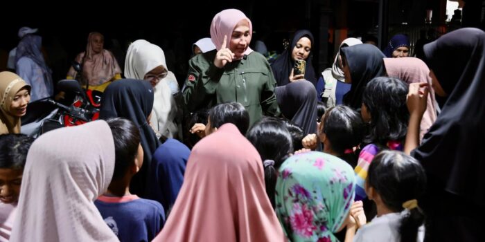 Sejak Minggu pagi, Kak Na bersama Plt Kepala Dinas Sosial Aceh Chaidir, Kepala Dinas Perindustrian dan Perdagangan Aceh T Adi Darma dan istri Ketua DPR Aceh, mengantar bantuan ke sejumlah posko Gampong yang tersebar di Kecamatan Peusangan dan Peusangan Selatan.
