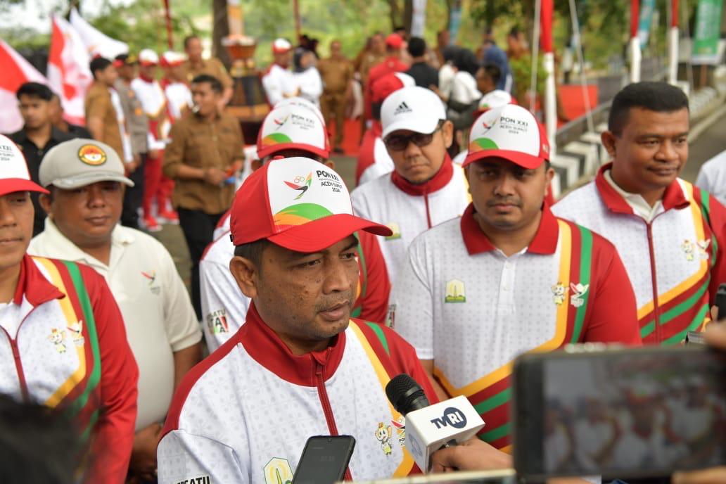 Ia kemudian menyerahkan api kepada tim pelari, menandai peluncuran kirab yang akan melintasi 23 kabupaten dan kota di Provinsi Aceh.