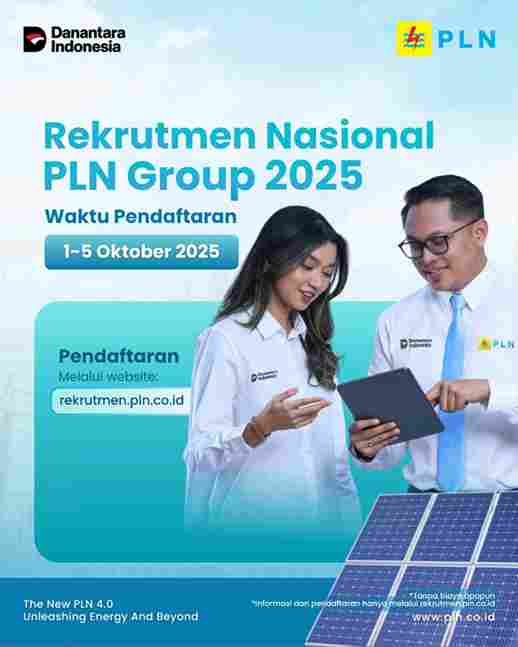 PT PLN (Persero) kembali membuka lowongan kerja (loker) dan kesempatan berkarier di BUMN ini. Perseroan, melalui Rekrutmen Umum PLN Group 2025, berencana memulai pembukaan rekrutmen karyawan pada 1 Oktober 2025. Rekrutmen ini sebagai wujud nyata kontribusi PLN terhadap pembangunan sumber daya manusia di sektor energi.