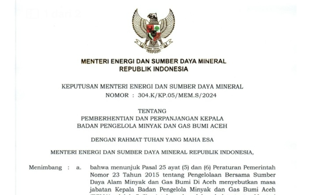 BANDA ACEH – Menteri ESDM RI, Bahlil Lahadalia, resmi memperpanjang masa jabatan Teuku Mohamad Faisal sebagai Kepala Badan Pengelola Migas Aceh (BPMA). Keputusan ini muncul di tengah polemik terkait proses seleksi calon kepala BPMA yang dilakukan oleh panitia seleksi (pansel) bentukan Pj Gubernur Aceh, Safrizal ZA, yang telah menjaring 18 calon.