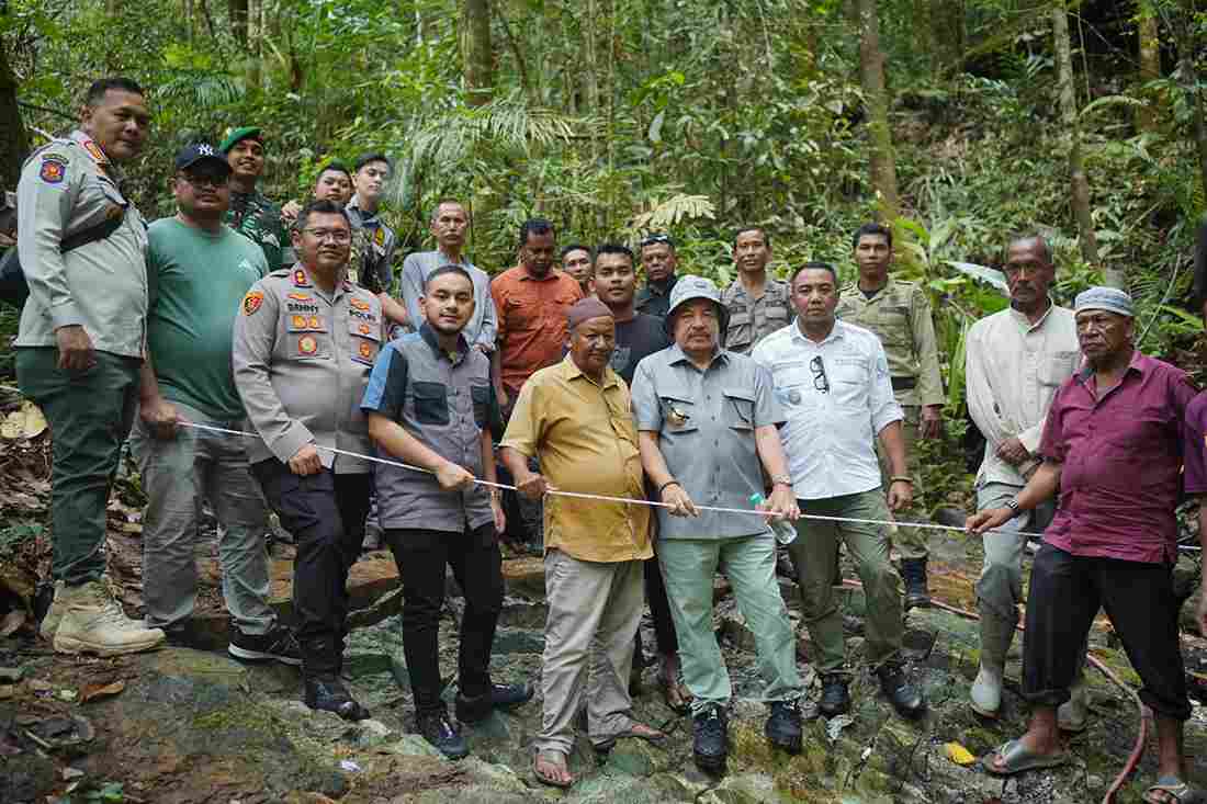 Bupati Nagan Raya, Dr. TR. Keumangan, S.H., M.H., bersama unsur Forum Koordinasi Pimpinan Daerah (Forkopimda) meninjau langsung lokasi penemuan dengan berjalan kaki melalui jalur setapak pada Kamis, 23 Oktober 2025.