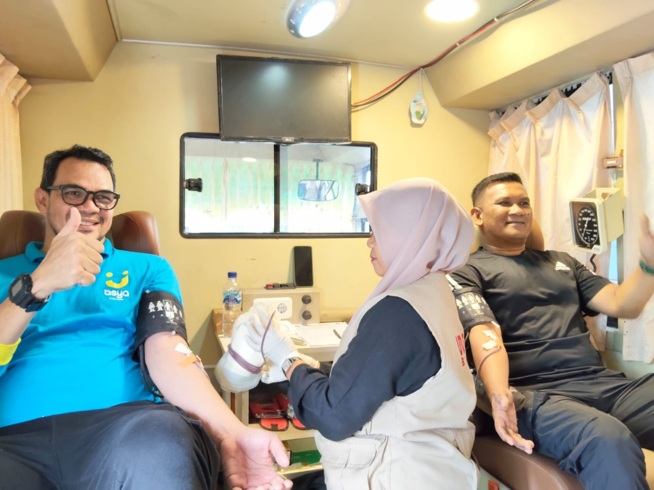 Pemimpin Kantor Cabang BCA Syariah Lhokseumawe Yoserinaldi yang ikut mendomorkan darah menjelaskan, 70 kantong darah terkumpul dari kegiatan senam bersama dan donor darah yang digelar di kantor Kejari Bireuen, Jum’at (12/09/25).