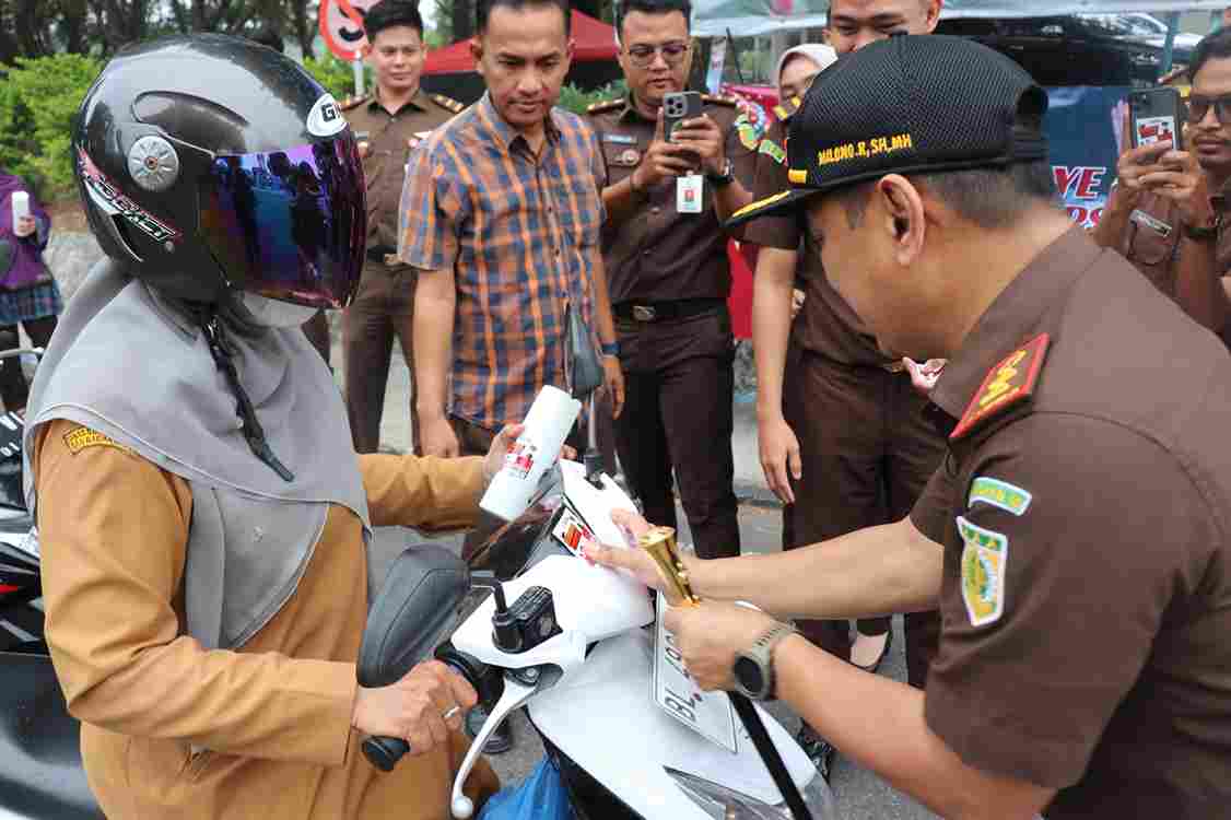Dalam kesempatan ini, Kejari Sabang melakukan pembagian tumbler dan stiker bertema Berantas Korupsi Untuk Indonesia Maju kepada masyarakat. Aksi simbolis ini