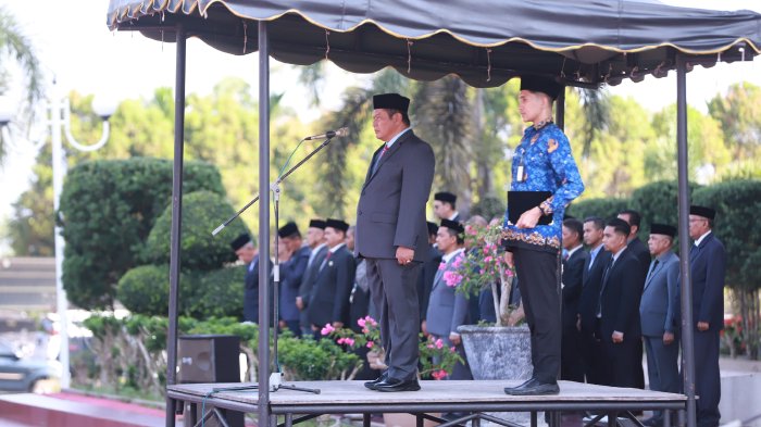 KOTA JANTHO – Penanews.co.id – Sekdakab Aceh Besar Bahrul Jamil SSos MSi yang akrab disapa BJ bertindak selaku Inspektur Upacara (Irup) Hari Jadi ke-30 Tahun Otonomi Daerah (Otda) tahun 2026, di halaman Kantor Bupati Aceh Besar, Senin (27/4/2026). Hadir dalam kesempatan itu, Staf Ahli Bupati, para Asisten Setdakab, Kepala OPD, para camat, dan ASN jajaran Pemerintah Kabupaten Aceh Besar.