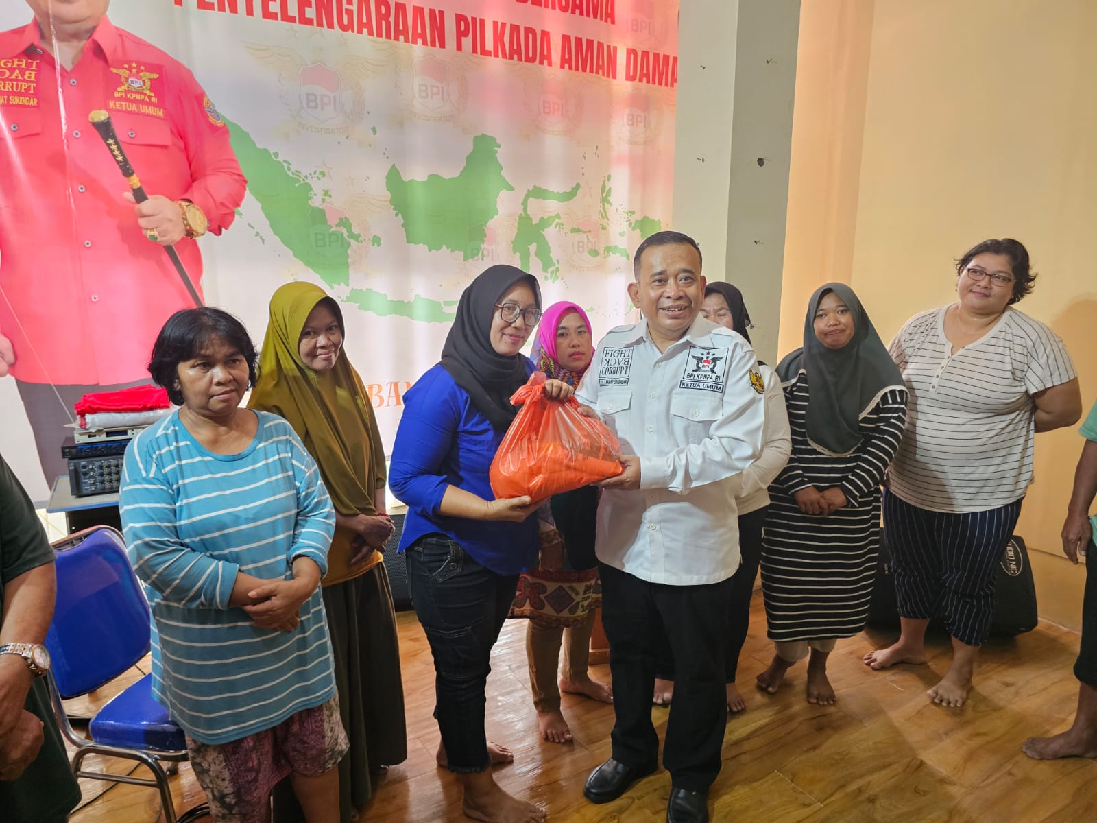 Dalam kesempatan acara syukuran dan doa bersama di Tower BPI KPNPA RI , ada pemberian 500 paket sembako yang dibagikan langsung Ketua Umum BPI KPNPA RI Tubagus Sukendar didampingi Eko Supahwono Sekjen , Arga Kadiv Hukum, Silvi Kadiv Humas , Artis Lilis Karlina Kadiv Seni Dan Budaya BPI KPNPA RI yang ikut hadir memberikan paket sembako kepada warga massyarakat dari 7 kecamatan di Tangerang Selatan