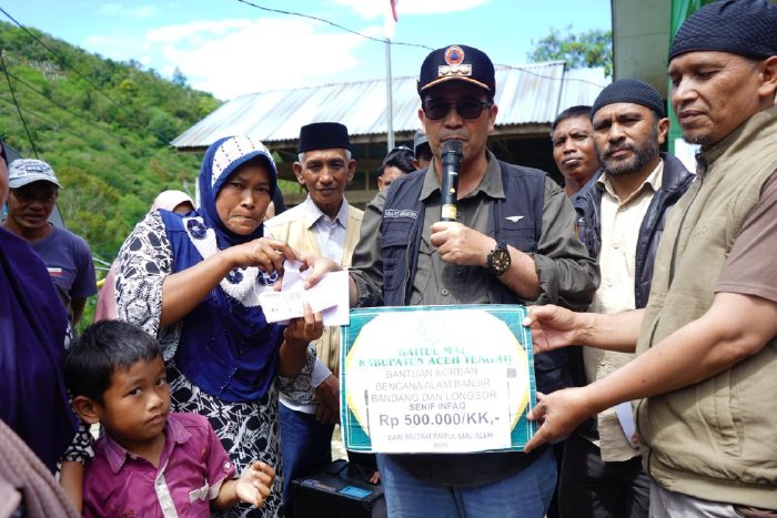 Melalui Baitul Mal Aceh Tengah, Pemerintah Kabupaten Aceh Tengah menyalurkan bantuan biaya pembersihan rumah sebesar Rp. 500.000 per unit rumah bagi masyarakat terdampak bencana, sebagai bentuk bantuan awal pemulihan pascabencana.