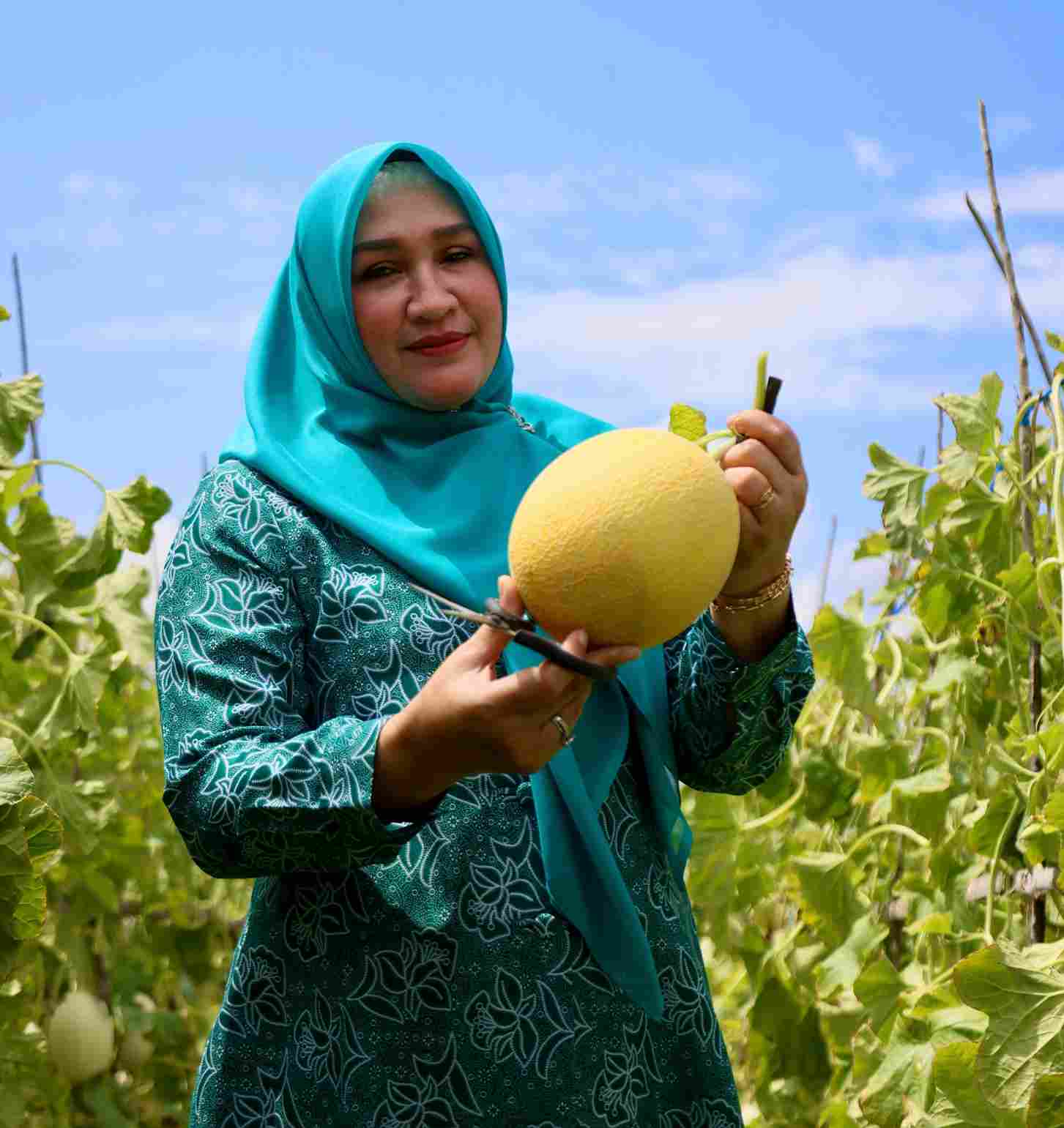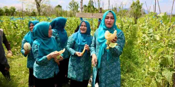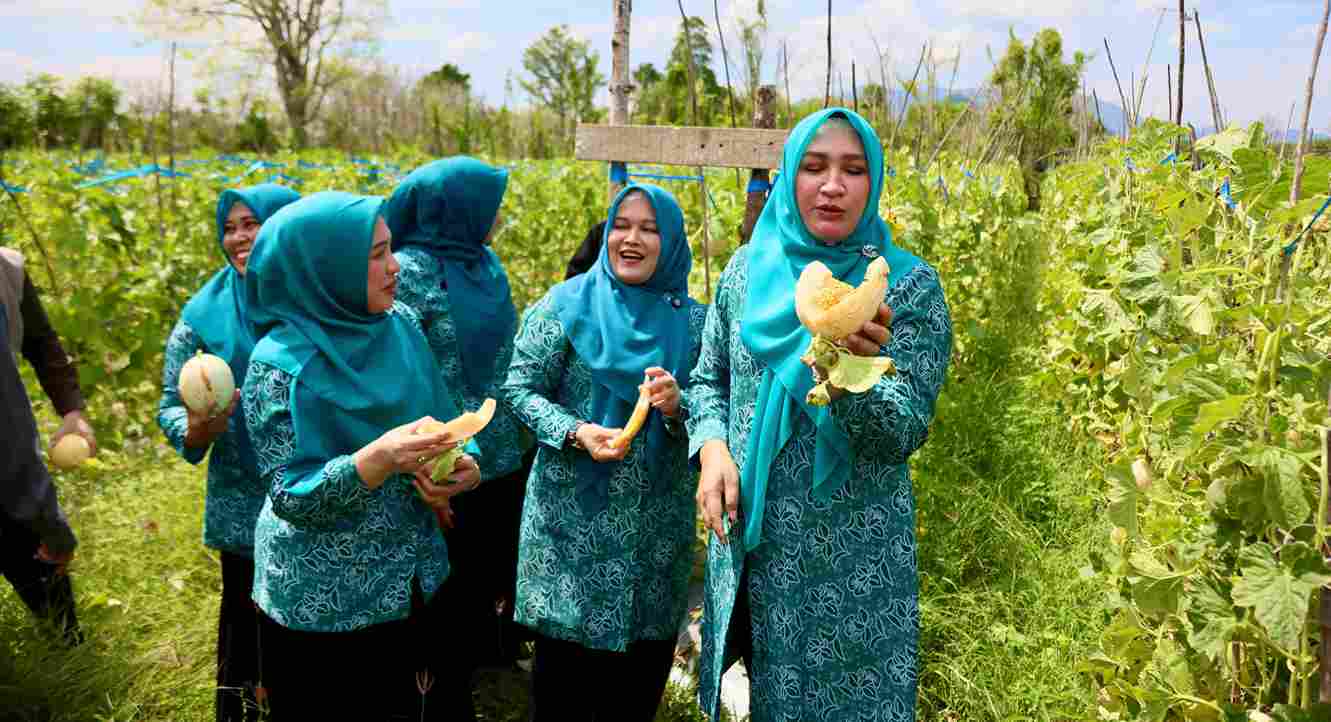 Ketua TP PKK Aceh Marlina Muzakir, Staf Ahli TP PKK Aceh Mukarramah Fadhlullah dan Ketua Dharma Wanita Persatuan Aceh Malahayati, bertolak ke Gampong Lam Manyang Kecamatan Pekan Bada, untuk memanen serta menikmati Melon.