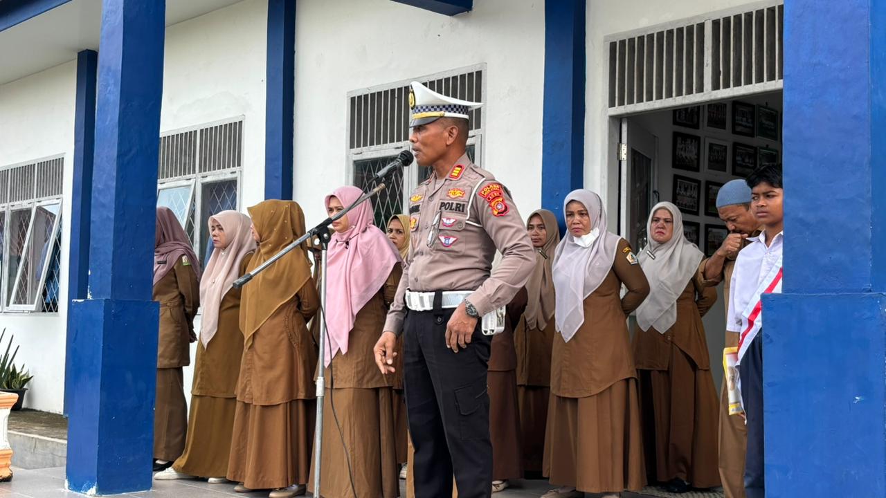 LHOKSUKON – Penanews.co.id – Satuan Lalu Lintas (Satlantas) Polres Aceh Utara terus menggencarkan edukasi keselamatan berkendara di kalangan pelajar. Pada Senin (13/10/2025), Kasat Lantas Polres Aceh Utara AKP Muhammad Jamil memimpin pelaksanaan upacara bendera di SMP Negeri 1 Lhoksukon, sekaligus menyampaikan pesan penting tentang disiplin dan etika berlalu lintas.