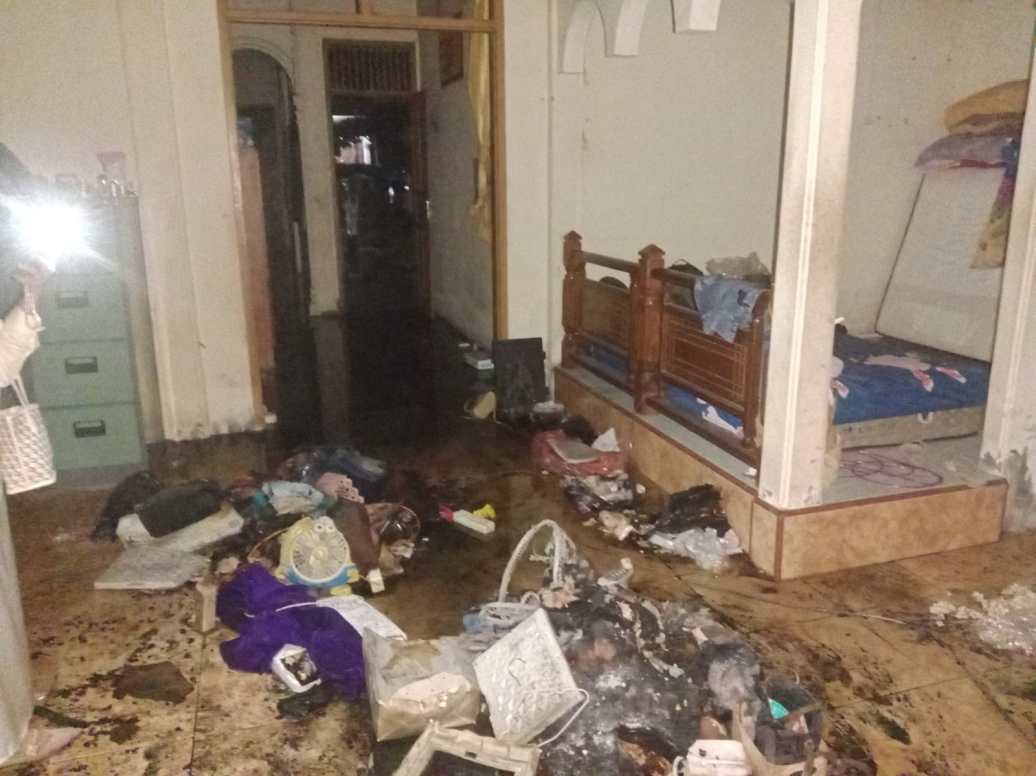Kejadian bermula sekitar pukul 20.30 WIB saat sebagian warga tengah menjalankan ibadah shalat Tarawih. Tiba-tiba terdengar suara ledakan dari dalam rumah. Menyadari adanya percikan api, warga segera mendobrak pintu belakang rumah dan berupaya memadamkan api dengan alat seadanya.
