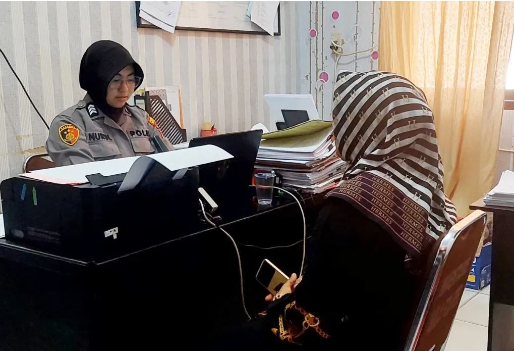 NN (40) pelaku menyiram air cabai kepada seorang santri di di Dayah Darul Hasanah Kecamatan Pante Ceureumen, Kabupaten Aceh Barat Aceh, tengah menjalani pemeriksaan polisi | foto ist
