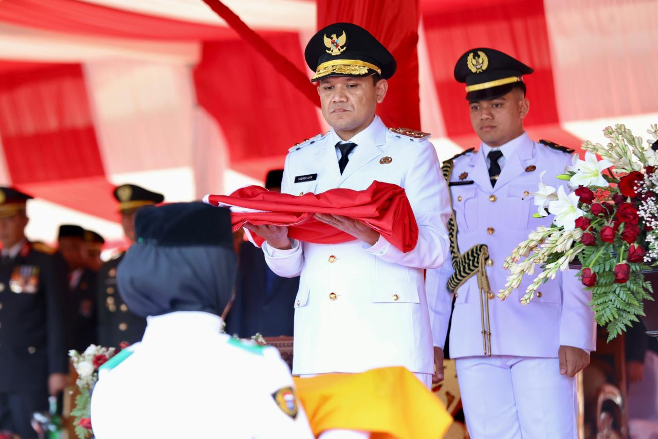 Kemudian komandan upacara Letkol Inf Ferry Ardian, S.Kom memberikan penghormatan kebesaran kepada Wakil Gubernur Fadhlullah selaku Inspektur Upacara yang dilanjutkan dengan penyampaian laporan bahwa upacara siap dimulai.