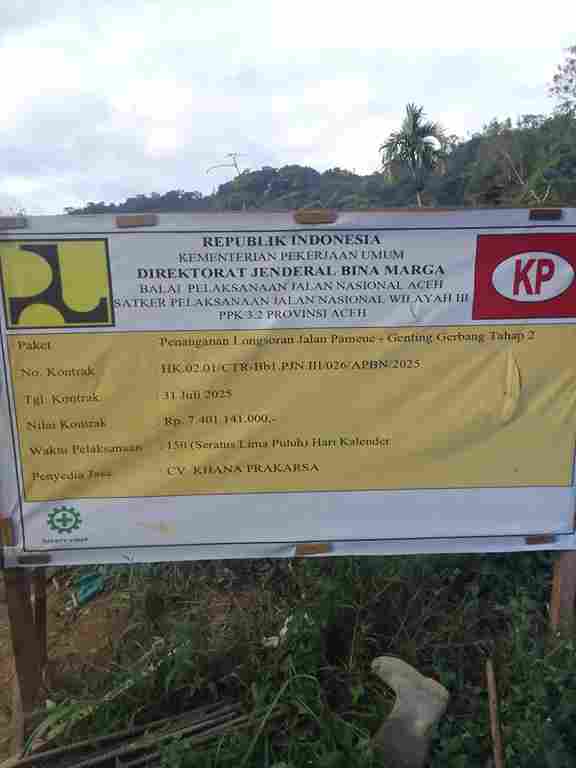 “Berdasarkan hasil pemantauan masyarakat dan informasi lapangan yang dihimpun, proyek yang tertuang dalam papan nama dengan nilai kontrak Rp 7.401.141.000,- dan tanggal kontrak 31 Juli 2025 tersebut tidak menunjukkan progres pekerjaan yang signifikan hingga awal Oktober 2025” ungkap Ketua DPW Alamp Aksi Aceh, Mahmud Padang, Senin (13/10/2025).
