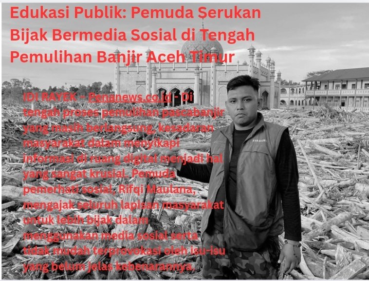 IDI RAYEK – Penanews.co.id – Di tengah proses pemulihan pascabanjir yang masih berlangsung, kesadaran masyarakat dalam menyikapi informasi di ruang digital menjadi hal yang sangat krusial. Pemuda pemerhati sosial, Rifqi Maulana, mengajak seluruh lapisan masyarakat untuk lebih bijak dalam menggunakan media sosial serta tidak mudah terprovokasi oleh isu-isu yang belum jelas kebenarannya.