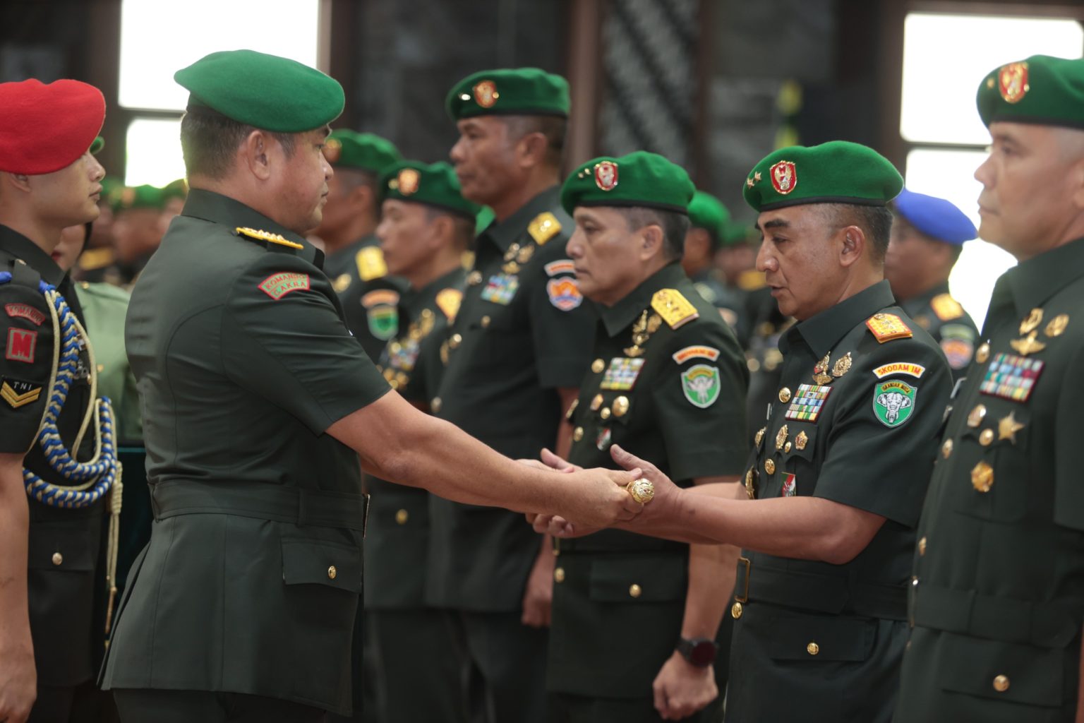 JAKARTA – Penanews.co.id — Kepala Staf Angkatan Darat (Kasad) Jenderal TNI Maruli Simanjuntak, M.Sc., memimpin acara Penyerahan Jabatan dan Serah Terima Jabatan (Sertijab) sejumlah pejabat strategis TNI Angkatan Darat di Markas Besar Angkatan Darat (Mabesad), Jakarta, Senin (8/9/2025). Salah satu jabatan penting yang diserahterimakan dalam kesempatan tersebut adalah Panglima Komando Daerah Militer Iskandar Muda (Pangdam IM) dari Mayor Jenderal TNI Niko Fahrizal, M.Tr.(Han)., kepada Mayor Jenderal TNI Joko Hadi Susilo, S.I.P.