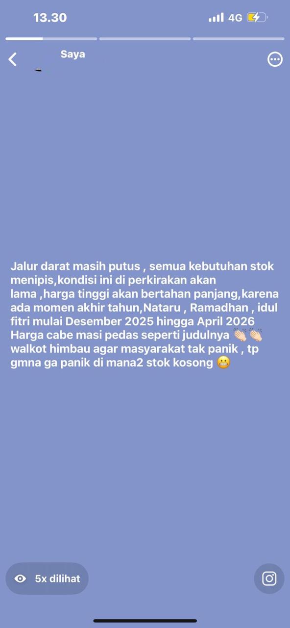 Selain barang tidak ada, juga bila barangnya ada, harganya sangat mahal yakni kenaikan mencapai 200 prosen, seperti cabai di pasar “semakin pedas sesuai judulnya” mencapai Rp. 250 ribu rupiah per kilogram.