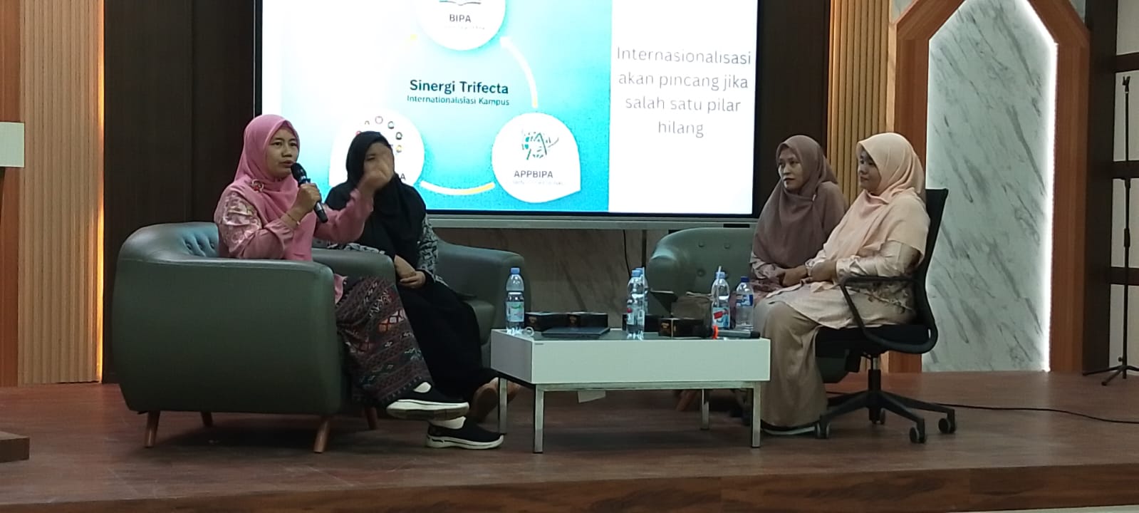 Sementara itu, Chery Julida menjelaskan bahwa BIPA berperan penting dalam memperkenalkan bahasa, budaya, dan khazanah keilmuan Aceh serta Indonesia kepada mahasiswa asing melalui pendekatan akademik dan intelektual. Adapun Fadhilah membahas BIPA dan internasionalisasi kampus sebagai peluang, tantangan, serta strategi yang perlu dikelola secara berkelanjutan.