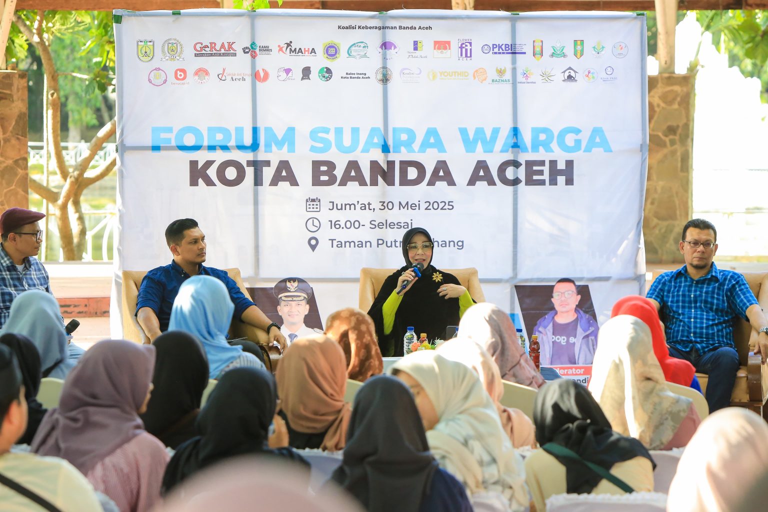 Sebuah baliho berukuran sedang dengan tulisan “Forum Suara Warga” juga terpampang di lokasi. “Forum ini merupakan inisiasi kami bersama Ibu Illiza dan Bang Afdhal,” ujar Destika Gilang Sari, perwakilan Koalisi Keberagaman Kota Banda Aceh.