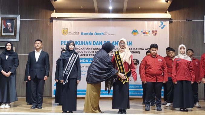 BANDA ACEH – Penanews.co.id – Puluhan anak yang tergabung dalam Forum Anak Kota Banda Aceh (Fokba) dan Pengurus Forum Generasi Berencana (Genre) Kota Banda Aceh Periode 2025-2027 dikukuhkan di Aula Lt IV Mawardy Nurdin, Selasa (16/12/2025).