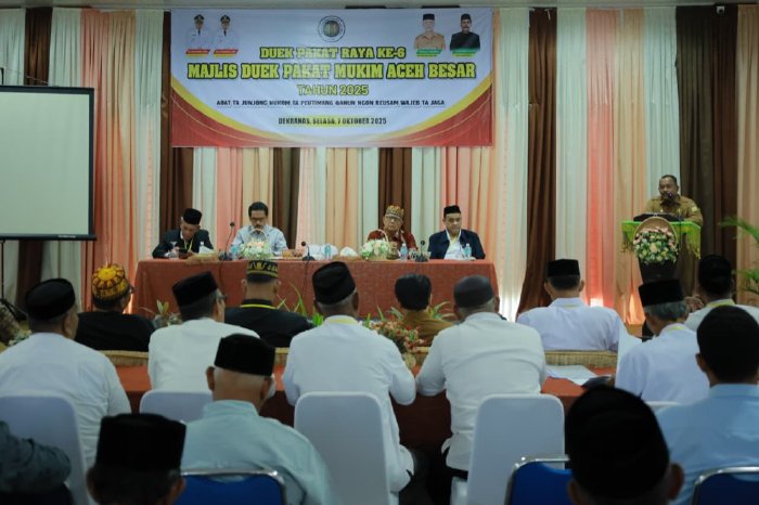 KOTA JANTHO – Penanews.co.id — Sebanyak 68 Mukim Se-Aceh Besar mengikuti Duek Pakat Raya Ke-6 yang dilaksanakan di Aula Dekranasda Aceh Besar, Gani, Ingin Jaya, Selasa (07/10/2025).