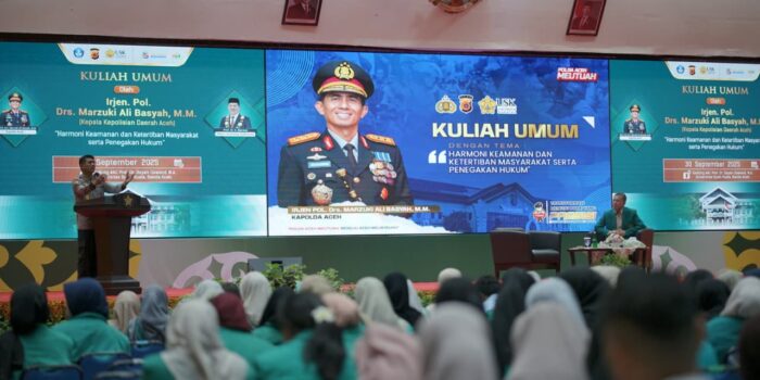 BANDA ACEH — Penanews.co.id — Kapolda Aceh Irjen Pol. Marzuki Ali Basyah tampil sebagai pembicara dalam kuliah umum di Universitas Syiah Kuala (USK) yang berlangsung di Gedung AAC Dayan Dawood, Selasa, 30 September 2025. Kuliah umum yang dihadiri ratusan mahasiswa lintas fakultas ini mengusung tema “Harmoni Keamanan dan Ketertiban Masyarakat serta Penegakan Hukum.”