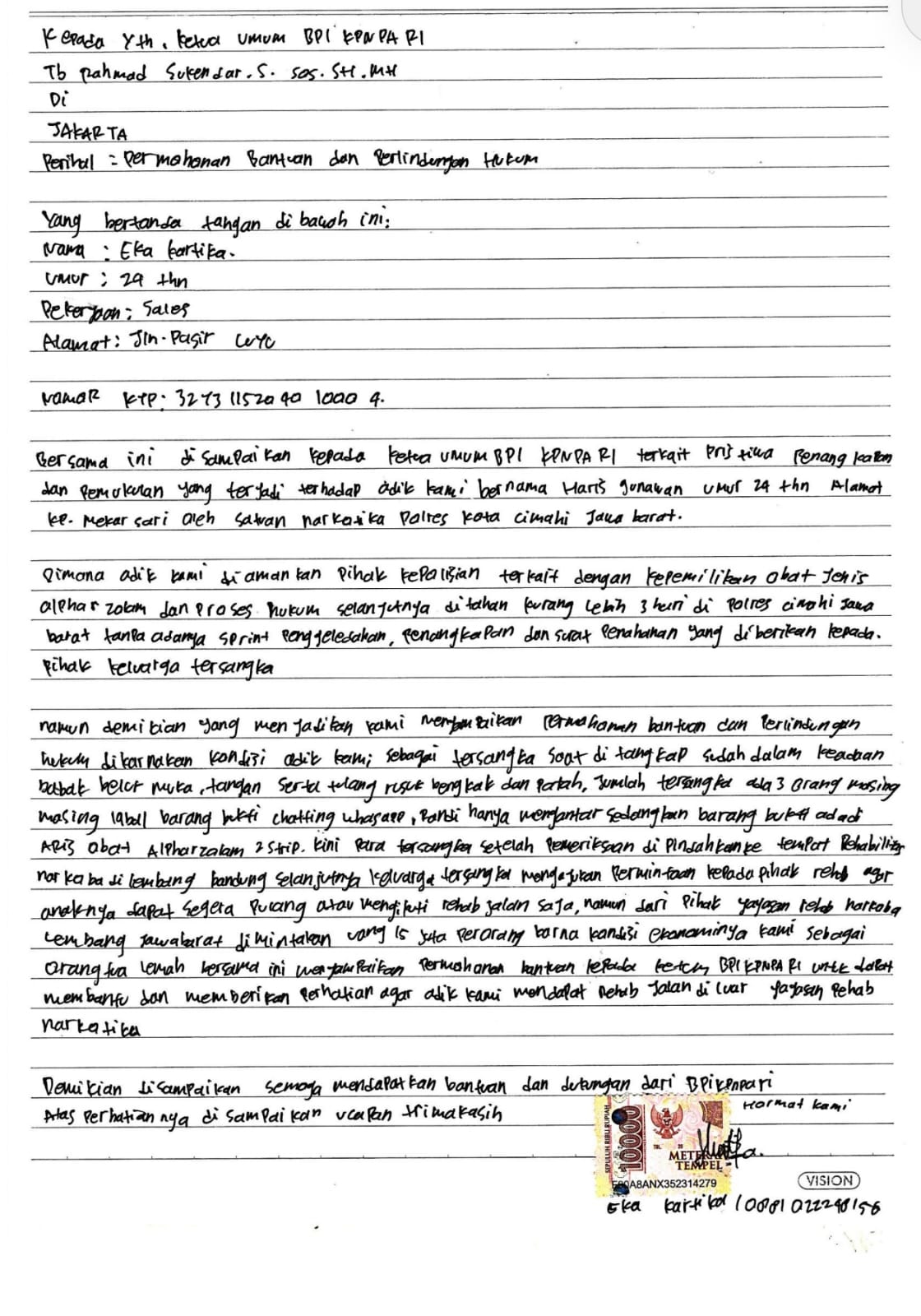 “Bantuan ini bukan hanya soal hukum. Ini soal harapan. Soal keyakinan bahwa kami tidak sendirian menghadapi situasi ini,” lanjutnya.