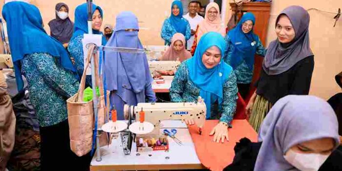 LHOKSUKON – Penanews.co.id — Ketua Dewan Kerajinan Nasional Daerah (Dekranasda) Aceh, Marlina Muzakir atau akrab disapa Kak Na mengunjungi tempat pembuatan ragam produk konveksi yang terjangkau dan berkualitas yaitu NG Konveksi, yang terletak di Jalan Elak Gampong Kuala Dua, Kecamatan Muara Batu, Kabupaten Aceh Utara, Kamis (11/9/2025).