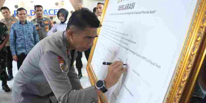 BANDA ACEH — Penanews.co.id — Kapolda Aceh Irjen Pol. Marzuki Ali Basyah menginisiasi dan mengajak para pemangku kepentingan di Aceh untuk mendeklarasikan “Green Policing” atau pemolisian hijau sebagai upaya memberantas tambang ilegal. Deklarasi tersebut berlangsung di Aula Machdum Sakti Polda Aceh, Kamis (02/10/2025).