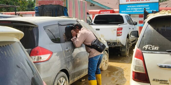 KUALA SIMPANG — Penanews.co.id – Kapolres Aceh Tamiang, AKBP Muliadi, bersama Dirbinmas Polda Aceh Kombes Donny Siswoyo, turun langsung menyisir dan memeriksa sejumlah mobil yang terlantar akibat terdampak banjir di sepanjang jalur utama hingga SPBU Tanah Terban, Senin (08/12/2025).