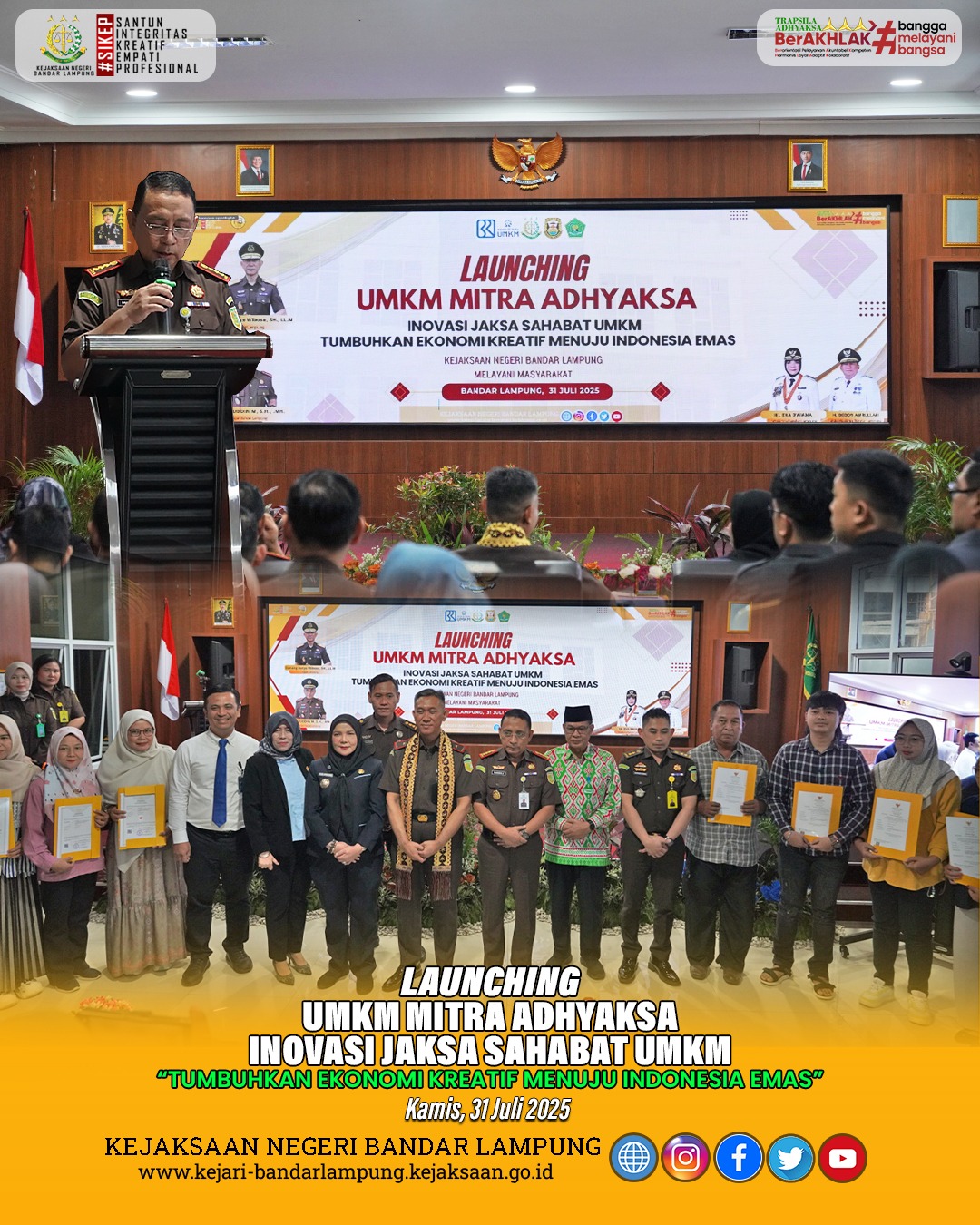 Nama jaksa yang masuk dalam nominasi kategori jaksa inovatif dalam penegakan hukum pada ajang adhyaksa awards 2025, Kasi Datun Kejari Bandar Lampung, Bambang Irawan, S.H, M.H, nampaknya sudah mendata ada 101 UMKM, sebagai langkah awal akan didampingi agar terjalin sinergi yang semakin kuat para pelaku UMKM, demi menciptakan sistem ekonomi yang inklusif dan berkeadilan bagi seluruh lapisan masyarakat, kedepan secara berkelanjutan akan mendata dan memverifikasi pelaku usaha UMKM dan secara terbuka untuk UMKM bisa berkonsultasi dengan Jaksa Pengacara Negara Kejaksaan Negeri Bandar Lampung secara Gratis.