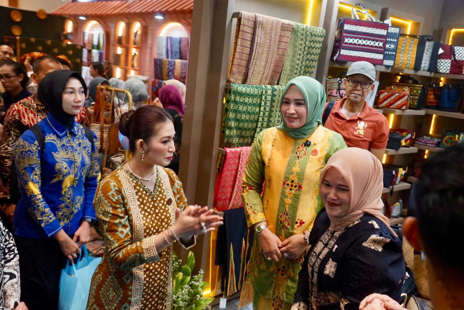 Setibanya di stan Aceh, Selvi disambut langsung oleh Ketua Dekranasda Aceh, Ny. Marlina Muzakir, bersama Wakil Ketua Dekranasda Aceh, Ny. Mukarramah Fadhlullah. Dalam kesempatan itu, Marlina memperkenalkan ragam kerajinan khas Aceh mulai dari kain batik, tenun, songket, bordir kerawang, anyaman rotan dan pandan, produk rumah tangga, kerajinan alam seperti eceng gondok dan batok kelapa, hingga produk turunan seperti minyak nilam dan kopi.