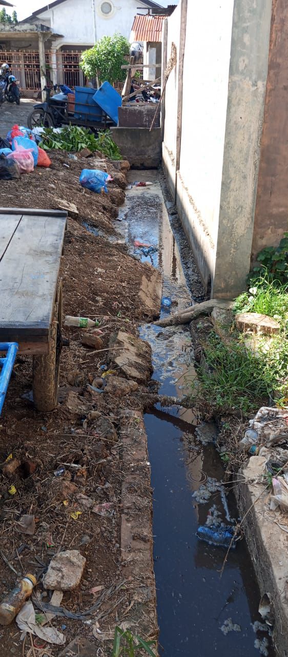 Buruknya kondisi pasar dipicu oleh sistem drainase yang tidak berfungsi optimal. Saluran air di bagian depan pasar tersumbat total, sementara got di sisi samping dan belakang masih berupa parit lama yang belum direnovasi sejak pasar dibangun.