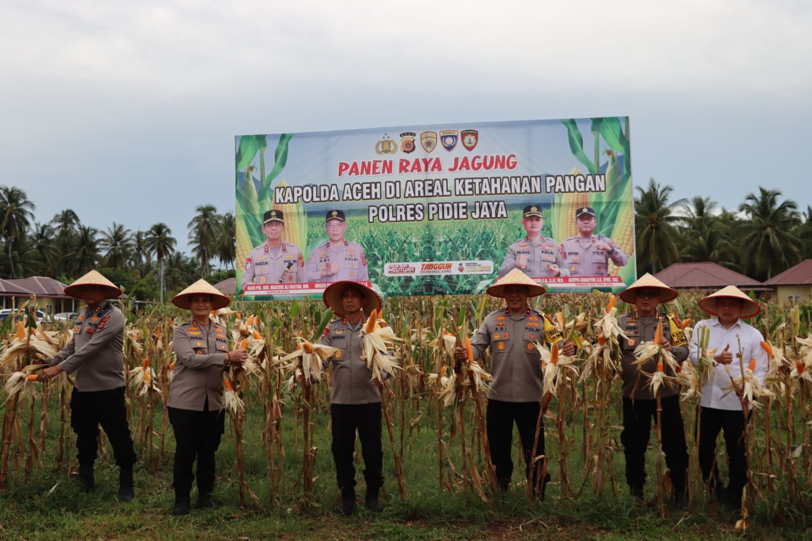 Kapolda Aceh bersama rombongan kemudian meninjau area Mako Polres Pidie Jaya dan melaksanakan sejumlah kegiatan, seperti penaburan bibit ikan di kolam Polres dan panen jagung. Upaya ini menegaskan komitmen Polda Aceh dan Polres Pidie Jaya dalam memperkuat program ketahanan pangan berbasis pemberdayaan masyarakat.