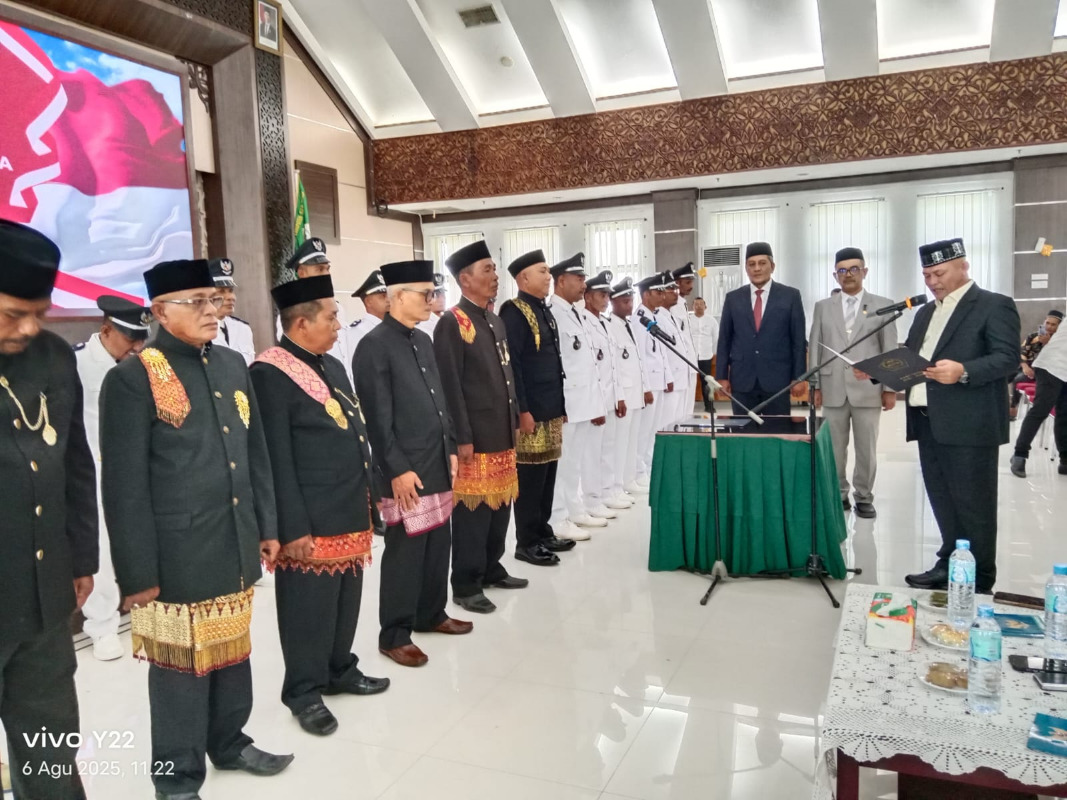 LHOKSUKON — Penanews.co.id – Bupati Aceh Utara Ismail A Jalil, SE melantik 6 Imum Mukim, 10 Geuchik dan 5 Pejabat Geuchik, Rabu (6/8/2025). Pelantikan ini di Aula Kantor Bupati setempat didasari atas geuchik yang lama memasuki Masa Pensiun