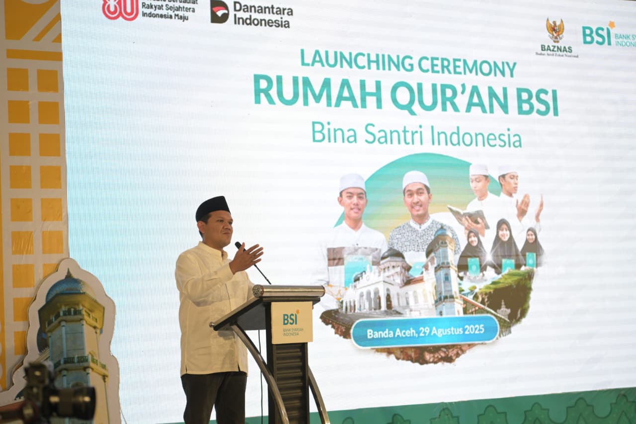 Hal tersebut disampaikan oleh Wakil Gubernur Aceh Fadhlullah, dalam sambutannya saat meluncurkan Rumah Qur’an BSI, di UMKM Center BSI, Jum’at (29/08/2025) sore.