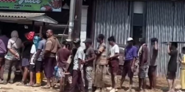 Warga Aceh Tamiang saat antre sembako di kawasan Karang Baru.(Dok PWI Aceh Tamiang)