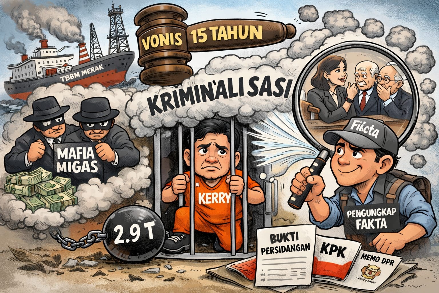 PUTUSAN Pengadilan Tindak Pidana Korupsi Jakarta Pusat pada 27 Februari 2026 terhadap Muhamad Kerry Adrianto Riza menandai babak penting dalam penegakan hukum sektor energi Indonesia. Kerry dijatuhi hukuman 15 tahun penjara dan denda Rp1 miliar, serta diwajibkan membayar uang pengganti sekitar Rp2,9 triliun terkait kerugian negara dari skema penyewaan Terminal BBM Merak dan sejumlah kapal dalam tata kelola minyak mentah periode 2018-2023. Ia merupakan anak dari pengusaha minyak terkenal Riza Chalid, sosok yang selama bertahun-tahun disebut dalam berbagai kontroversi bisnis energi nasional.