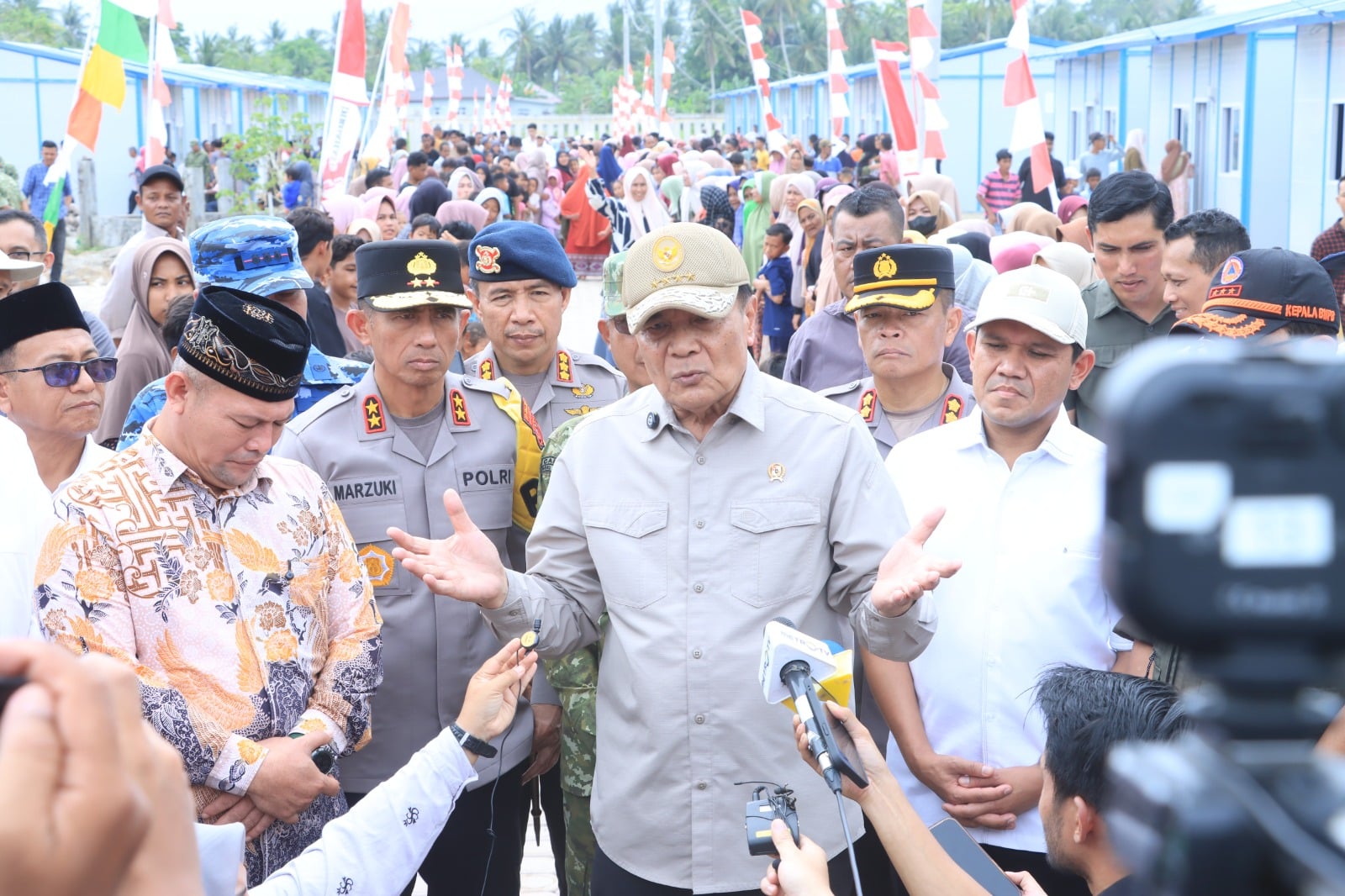 Dalam sambutannya, Menko Polkam RI menyampaikan bahwa pembangunan hunian tetap tersebut merupakan bentuk komitmen pemerintah dalam membantu masyarakat yang terdampak bencana agar dapat segera bangkit dan kembali menjalani aktivitas secara normal.