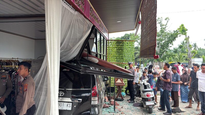 LHOKSUKON – Penanews.co.id — Sebuah mobil Toyota Avanza berpelat BL 1901 KS dikemudikan oleh Malahayati (45), menabrak sebuah toko butik milik warga Aceh Utara diduga pengemudinya kehilangan kendali.