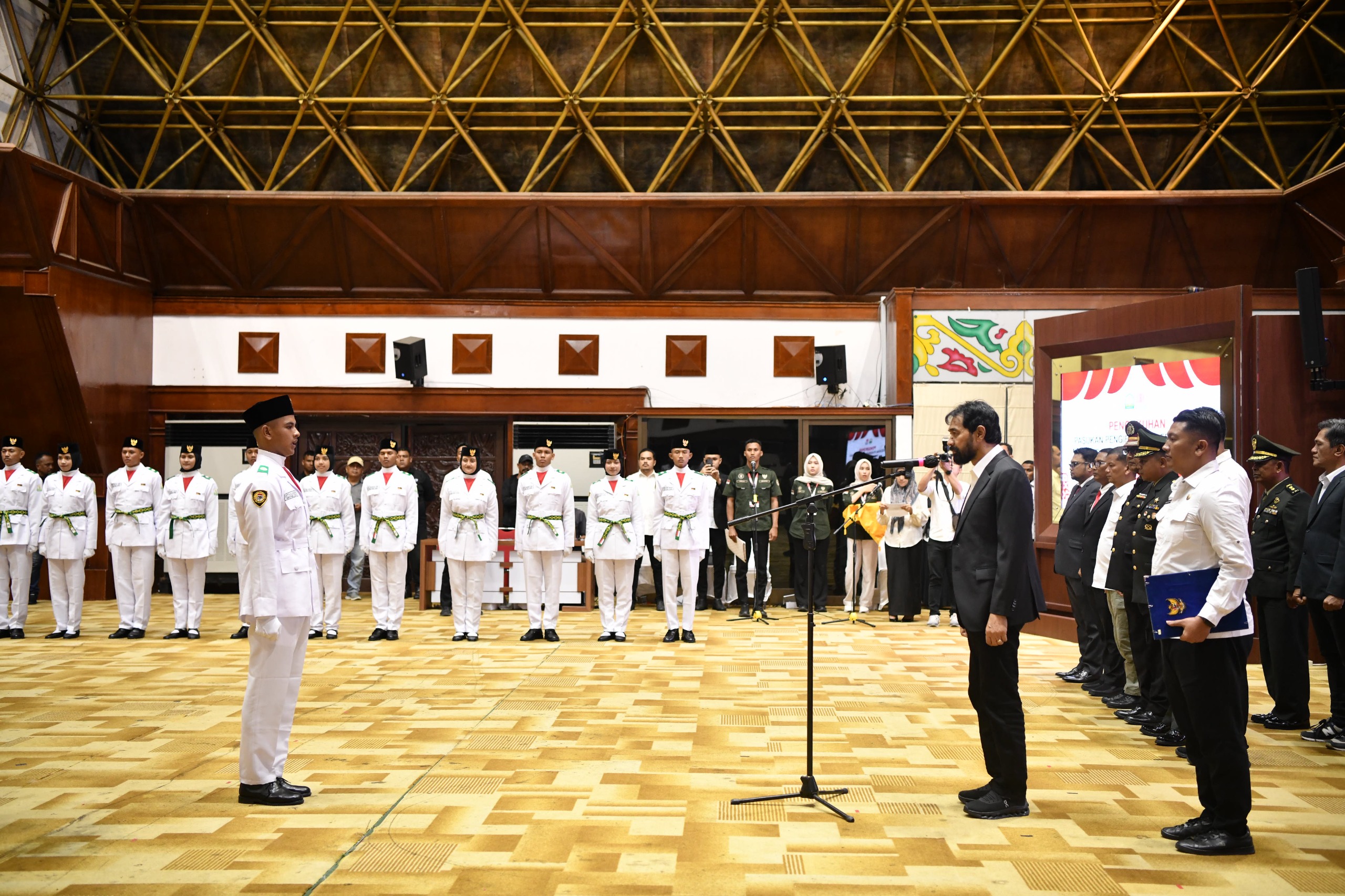 BANDA ACEH – Penanews.co.id Gubernur Aceh, Muzakir Manaf (Mualem), secara resmi mengukuhkan 44 anggota Pasukan Pengibar Bendera Pusaka (Paskibraka) Tingkat Provinsi Aceh Tahun 2025 di Anjong Mon Mata, Banda Aceh, Rabu (13/8/2025).