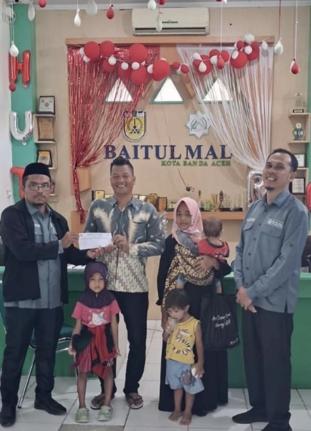 Santunan tersebut diserahkan langsung oleh Ketua Badan Baitul Mal Kota Banda Aceh, Dr. Tgk. Muhammad Yusuf Al-Qardhawy, MH, didampingi Kepala Sekretariat Wahyudi, SSTP, M.Si.