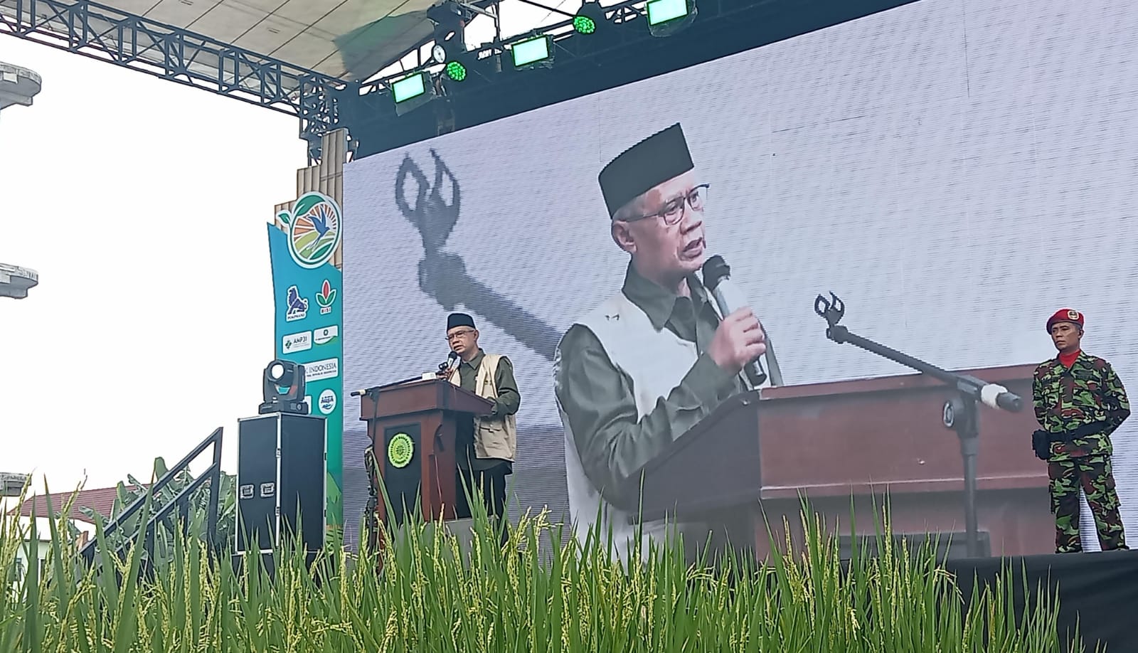 Ketua Umum Pimpinan Pusat Muhammadiyah Prof. Dr. Haedar Nashir, M.Si dalam pembukaan Jambore Nasional 1 Jamaah Tani Muhammadiyah di Universitas Muhammadiyah Gombong (20/9). | Muhammadiyah.or.id