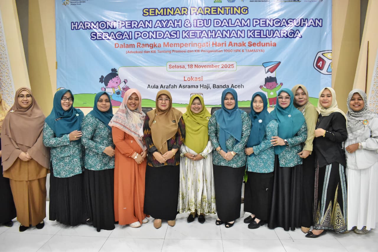 BANDA ACEH – Penanews.co.id – Ketua Staf Ahli TP-PKK Aceh, Mukarramah Fadhlullah, membuka Seminar Parenting dalam rangka memperingati Hari Anak Sedunia yang diselenggarakan oleh BKKBN Provinsi Aceh di Aula Arafah Asrama Haji Aceh, Selasa (18/11/2025).